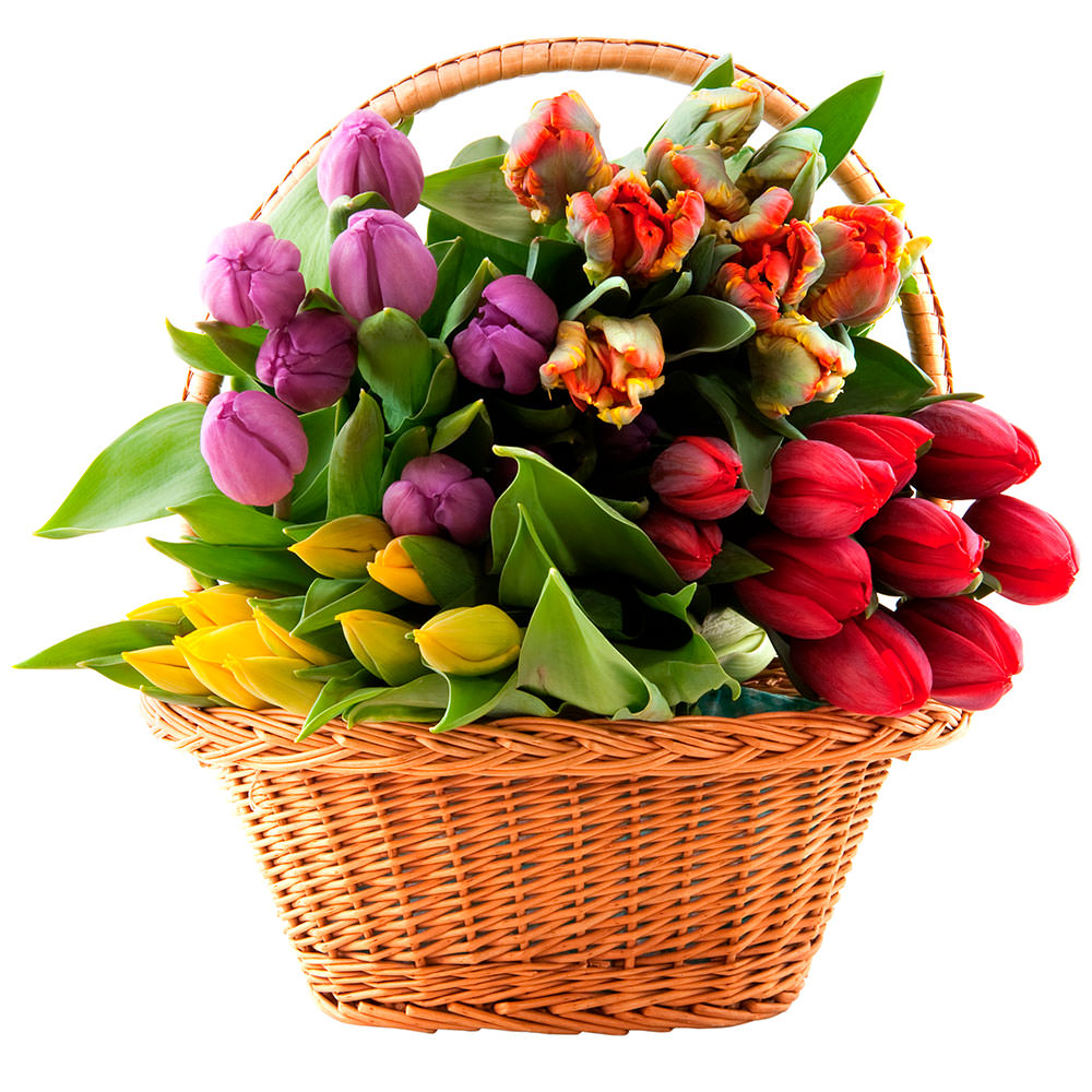 Цветы в корзинке «Микс тюльпанов» с доставкой по г Кемерово: вы можете купить букет в гипермаркете цветов «Флормания» по цене от 3790 руб.